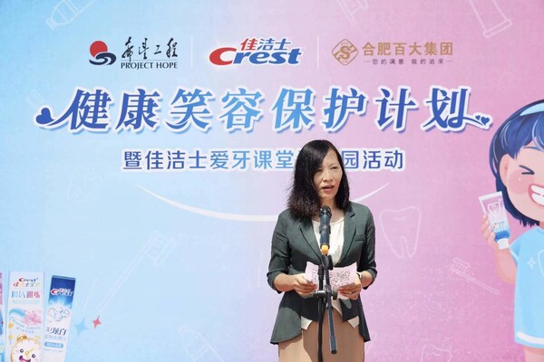 寶潔大中華區(qū)口腔護(hù)理品類銷售副總裁李安華也在致辭中表示:"一本好書,一段故事,一場電影,孩提時(shí)代的經(jīng)歷往往是陪伴一個(gè)人一生的可貴財(cái)富,而同時(shí),好的習(xí)慣,也是能讓我們終身受益。一直以來,佳潔士專注于國民的口腔健康,今天,佳潔士聯(lián)合青基金、合肥百大集團(tuán)公益伙伴,一起來守護(hù)最美安徽微笑,給大家?guī)淼牟粌H僅是專業(yè)的健康口腔護(hù)理產(chǎn)品,更希望的是幫助大家通過健康的口腔習(xí)慣和理念,帶來陪伴一生的堅(jiān)固牙齒和潔白閃耀的"微笑線"。