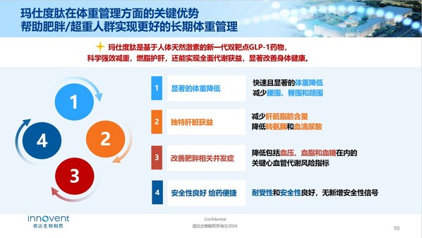 瑪仕度肽首個(gè)減重適應(yīng)癥的上市申請(qǐng)正在國(guó)家藥品監(jiān)督管理局(NMPA)藥品審評(píng)中心(CDE)的審評(píng)中,有望為中國(guó)肥胖及超重人群提供安全、強(qiáng)效并全面改善心血管代謝的體重管理方案。下一步,信達(dá)生物將持續(xù)探索、擴(kuò)大瑪仕度肽的適應(yīng)癥范圍,加強(qiáng)新一代GLP-1產(chǎn)品的研發(fā),助力慢病患者改善生活質(zhì)量。