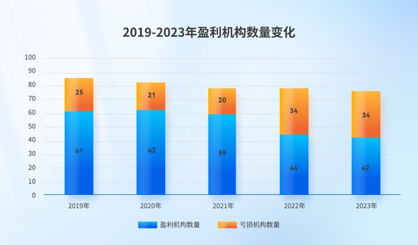 保費雖然企穩(wěn)反彈,但壽險公司的盈利能力下降仍不可忽視。2023年,已披露年報的76家公司中,只有42家公司實現(xiàn)盈利,是過去5年盈利機構(gòu)數(shù)量最少的一年。招商信諾人壽保險有限公司(以下簡稱"招商信諾")自2003年成立以來,堅持規(guī)模與效益均衡發(fā)展,成為第一家在成立后第37個月即實現(xiàn)盈利的外資壽險公司,且之后持續(xù)每年盈利。2023年,招商信諾實現(xiàn)凈利潤4.25億元,過去5年累計盈利53.5億元,五年累計盈利排在壽險公司的第13位。
