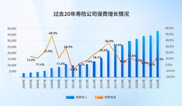 過去的2023年,我國的壽險行業(yè)保費收入在時隔兩年之后,再次實現(xiàn)兩位數(shù)的增長,全年達到了10.3%,也是自2019年以來,首次增速提升。
