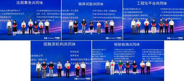 隨后,工信部消費(fèi)品司二級(jí)巡視員謝立安和東麗區(qū)副區(qū)長李全利為檢驗(yàn)檢測共同體、臨床試驗(yàn)共同體、法規(guī)事務(wù)共同體、工程化平臺(tái)共同體、投融資機(jī)構(gòu)共同體頒發(fā)證書。