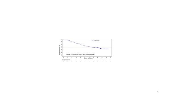 本研究共入組146例受試者,截至2023年12月29日,中位隨訪(fǎng)時(shí)間為42.41個(gè)月,中位總生存期(OS)達(dá)到41.79個(gè)月。研究者評(píng)價(jià)的客觀(guān)緩解率(ORR)和疾病控制率(DCR)分別為63.7%和94.5%,中位緩解持續(xù)時(shí)間(DoR)和無(wú)進(jìn)展生存期(PFS)分別為14.06個(gè)月和14.55個(gè)月。
