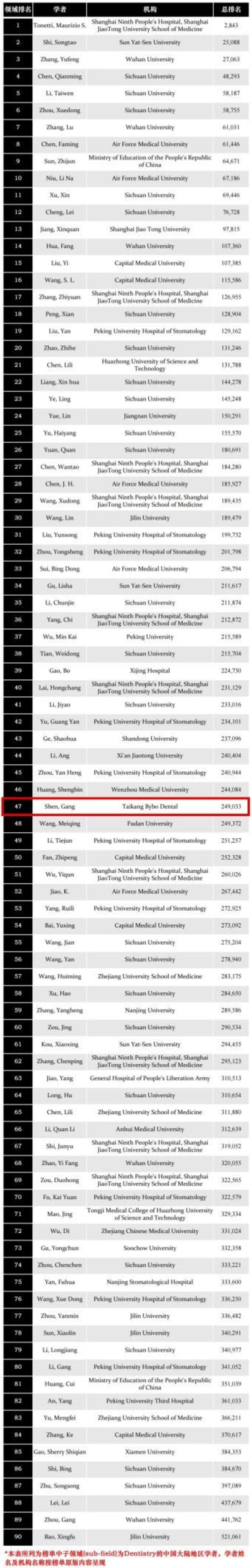 北京和上海2024年9月25日 /美通社/ -- 近日,美國斯坦福大學與愛思唯爾數據庫(Elsevier)聯合發(fā)布了"斯坦福全球前2%頂尖科學家榜單"(Top2% of Scientists on Stanford List)。經統計,共有90位中國大陸口腔醫(yī)學學者入選,泰康拜博正畸專家沈剛教授再次榮譽入選"年度科學影響力榜單",也是非公醫(yī)療機構屈指可數的入選科學家。這不僅充分展示了沈剛教授所取得的學術成果在口腔醫(yī)學領域具有的廣泛世界影響力,同時意味著其個人科研能力和杰出貢獻獲得了行業(yè)的權威認可。