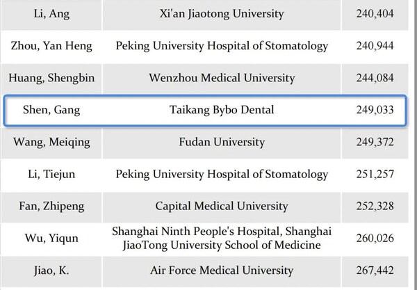 上海2024年9月29日 /美通社/ -- 近日,美國斯坦福大學基于愛思唯爾數(shù)據(jù)庫(Elsevier)發(fā)布了"斯坦福全球前2%頂尖科學家榜單"(Top 2% of Scientists on Stanford List),泰康拜博口腔首席正畸專家、正雅GS技術(shù)與產(chǎn)系研發(fā)首席科學家沈剛教授連續(xù)兩年榮登該榜單,成為非公醫(yī)療機構(gòu)屈指可數(shù)的入選科學家。