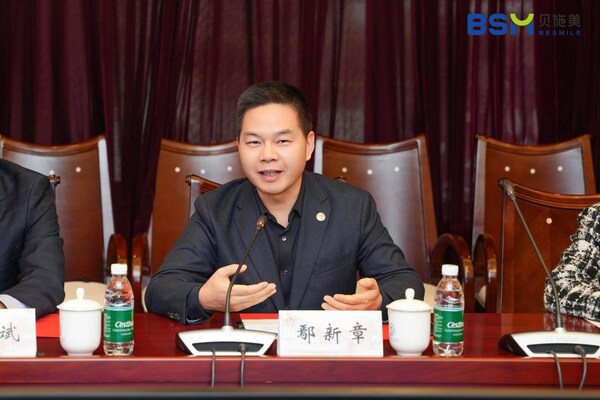 隨后,成都貝施美醫(yī)療科技股份有限公司創(chuàng)始人兼CEO鄢新章先生進行了捐贈致辭。他表示,貝施美在口腔修復(fù)與種植領(lǐng)域已深耕十一載,以創(chuàng)新智造,助力口腔行業(yè)數(shù)字化發(fā)展。自成立以來,貝施美便堅定不移地踏上履行社會責任的征程,將企業(yè)的蓬勃發(fā)展與社會進步緊密相連,為構(gòu)建更加健康、和諧、美好的社會環(huán)境貢獻自己的一份力量。