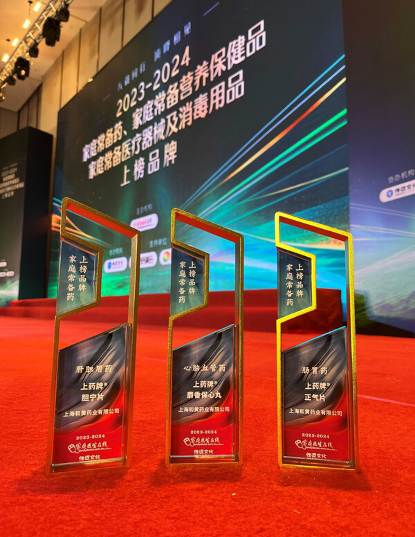 上海2024年11月25日 /美通社/ -- 近日,備受矚目的"2023-2024家庭常備藥"上榜品牌活動結(jié)果揭曉。上海和黃藥業(yè)的上藥牌®麝香保心丸及膽寧片連續(xù)6年入選家庭常備藥榜單,獨家品種正氣片也首次入選家庭常備藥榜單。