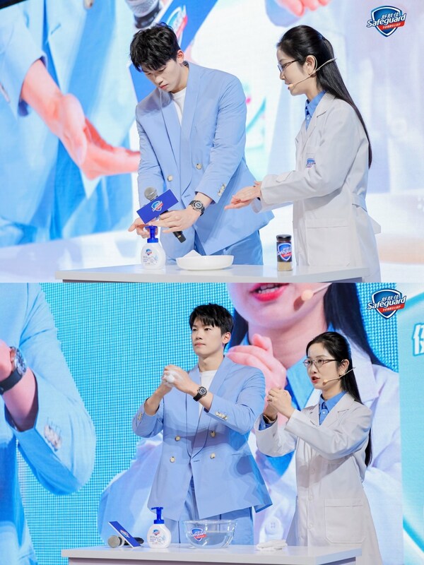 眾所周知,手部是守護(hù)健康的首要屏障。在活動(dòng)現(xiàn)場(chǎng),汪順和寶潔科學(xué)家小慧老師帶領(lǐng)大家學(xué)習(xí)七步洗手法,還通過胡椒粉排斥細(xì)菌實(shí)驗(yàn),展示了舒膚佳洗手液的抑菌功效;通過吹泡泡實(shí)驗(yàn),直觀展示了舒膚佳沐浴露綿密的泡沫,在有效清潔肌膚的同時(shí),還能為消費(fèi)者帶來SPA般的體驗(yàn)。