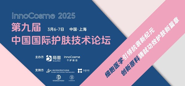 InnoCosme 2025第九屆中國國際護(hù)膚技術(shù)論壇,由上海商圖和個(gè)護(hù)前沿媒體聯(lián)合舉辦。以"細(xì)胞醫(yī)學(xué)引領(lǐng)抗衰新紀(jì)元,創(chuàng)新原料鑄就功效護(hù)膚新篇章"為主題,于2025年3月6-7日在上海舉辦。