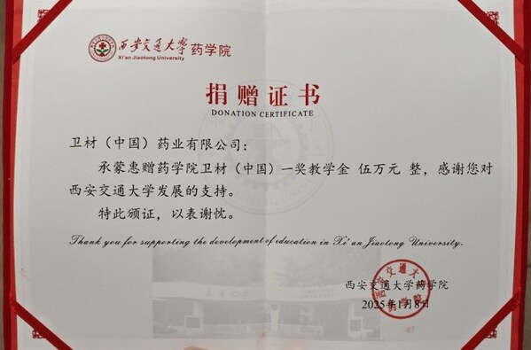 自2023年起,衛(wèi)材中國將連續(xù)5年在西安交通大學(xué)藥學(xué)院設(shè)立"衛(wèi)材中國獎(jiǎng)教學(xué)金",每年捐贈(zèng)5萬元,西安交通大學(xué)藥學(xué)院"衛(wèi)材中國獎(jiǎng)教學(xué)金"將惠及65名優(yōu)秀的西安交大教師和學(xué)生。