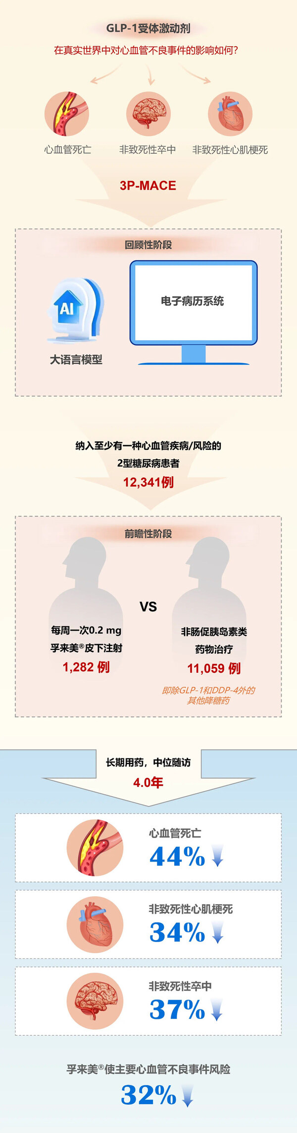 FLYING研究是迄今全球首個專屬中國人群的GLP-1RA心血管獲益大型真實(shí)世界研究,為孚來美®可對2型糖尿病患者帶來顯著心血管獲益提供了可靠的證據(jù)支持。