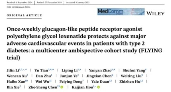 上海2025年2月27日 /美通社/ -- 近日,翰森制藥長效胰高血糖素樣肽-1受體激動劑(GLP-1RA)孚來美®(聚乙二醇洛塞那肽注射液)大型多中心雙向隊(duì)列研究(FLYING研究)結(jié)果發(fā)表于國際著名醫(yī)學(xué)期刊MedComm(IF:10.7)[1]。該研究證實(shí)長期使用孚來美®的2型糖尿病患者,其主要心血管不良事件(MACE)風(fēng)險(xiǎn)顯著下降32%。