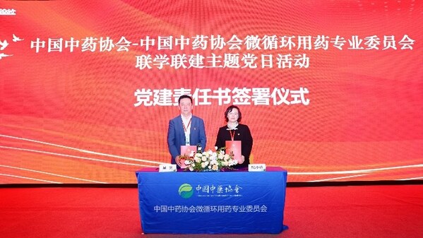 在黨建環(huán)節(jié),黎燕妍副主任宣讀了《中國中藥協(xié)會黨支部黨建工作質量提升行動計劃(2024—2026年)》以及《中國中藥協(xié)會深入貫徹中央八項規(guī)定精神學習教育實施方案》等相關文件,介紹了協(xié)會黨建工作的背景、目標和措施。隨后,進行責任書簽訂儀式,吳憲常務副會長與微循環(huán)用藥專委會副秘書長、黨建聯(lián)系人阮小芬教授共同簽署了黨風廉政建設目標責任書及意識形態(tài)和安全保衛(wèi)責任書,以加強黨建工作和責任落實。