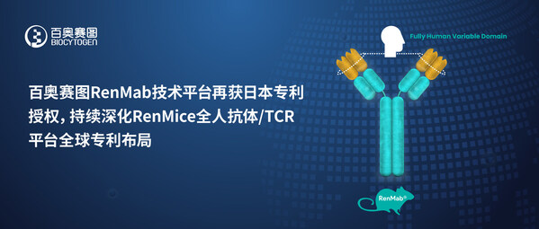 北京 2025年6月5日 /美通社/ -- 百奧賽圖(北京)醫(yī)藥科技股份有限公司("百奧賽圖",股票代碼:02315.HK)今日宣布,其自主研發(fā)的全人抗體小鼠RenMab®平臺(tái)關(guān)鍵技術(shù)獲得由日本專利局(Japan Patent Office, JPO)頒發(fā)的發(fā)明專利證書(shū)。這是百奧賽圖RenMice®全人抗體平臺(tái)家族在全球知識(shí)產(chǎn)權(quán)保護(hù)的又一關(guān)鍵進(jìn)展,標(biāo)志著其系統(tǒng)性全球?qū)@季謶?zhàn)略的穩(wěn)步推進(jìn)與深化,充分彰顯了其核心技術(shù)的創(chuàng)新性與國(guó)際認(rèn)可度。