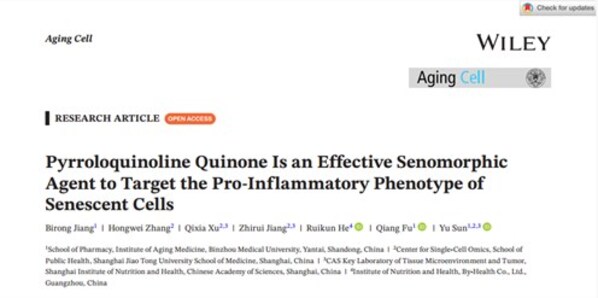 近日,國(guó)際權(quán)威期刊《Aging Cell》最新發(fā)表的研究(由湯臣倍健與中國(guó)科學(xué)院上海營(yíng)養(yǎng)與健康研究所等聯(lián)合完成)揭示:PQQ能降低導(dǎo)致"內(nèi)在衰老"的有害因子——衰老相關(guān)分泌表型(SASP),大幅減少衰老細(xì)胞內(nèi)的自由基,同時(shí),它還能緩解衰老小鼠多個(gè)器官的慢性炎癥。這意味著,PQQ有望成為助力延緩衰老、維持機(jī)體健康的有效成分,該研究也為未來(lái)探索安全、有效的天然抗衰物質(zhì)開(kāi)辟了新思路。
