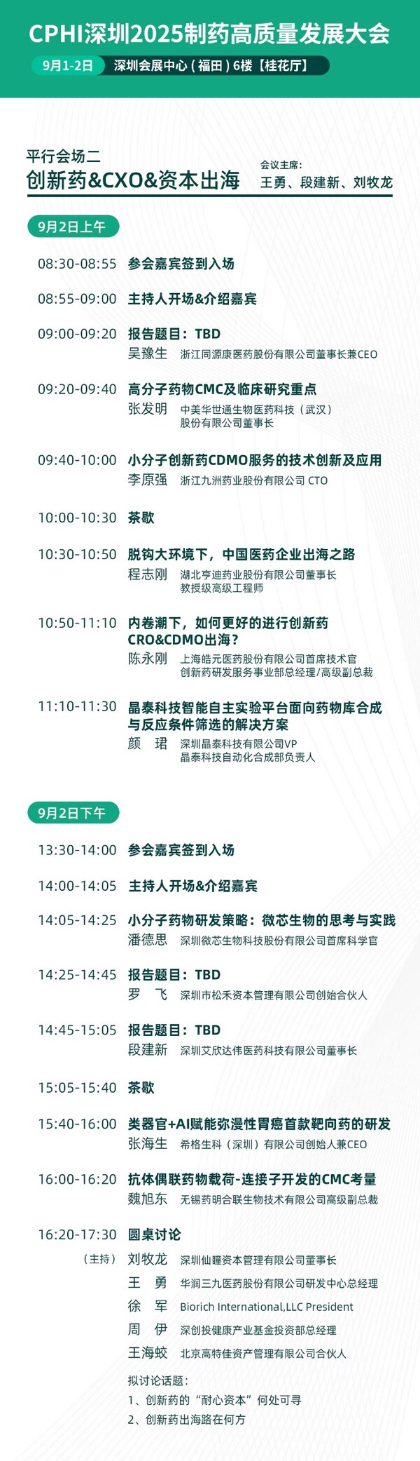 本次大會同期舉辦CPHI深圳2025,提供演講贊助、圓桌論壇贊助、資料入袋、易拉寶等贊助合作機會,歡迎參會參展。