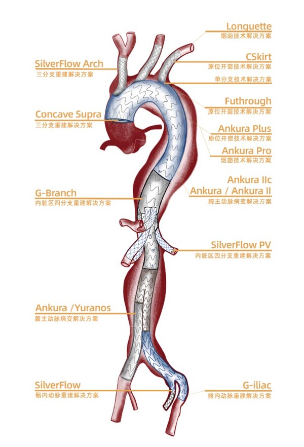 先健弓部分支重建原位開窗技術創(chuàng)新產(chǎn)品矩陣