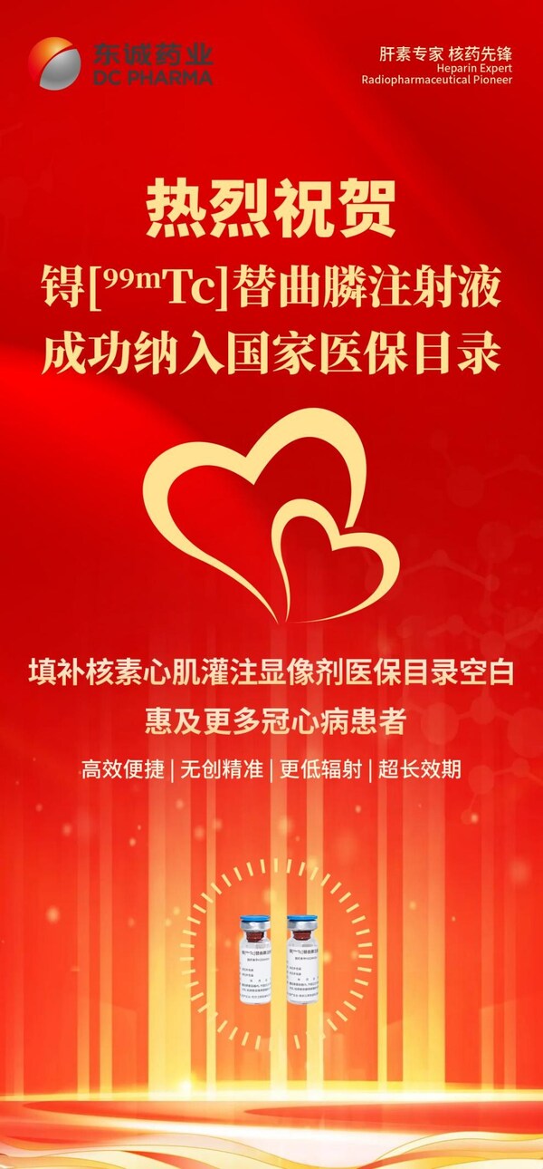 南京江原安迪科(東誠藥業(yè)全資子公司)生產(chǎn)的锝[99m Tc]替曲膦注射液先后經(jīng)過資料申報、形式審查、專家評審、現(xiàn)場談判等環(huán)節(jié),成功納入國家醫(yī)保目錄,未來將極大程度減輕患者經(jīng)濟負擔(dān),提高患者對SPECT-MPI檢查的可及性,促進冠狀動脈疾病診療精準化。